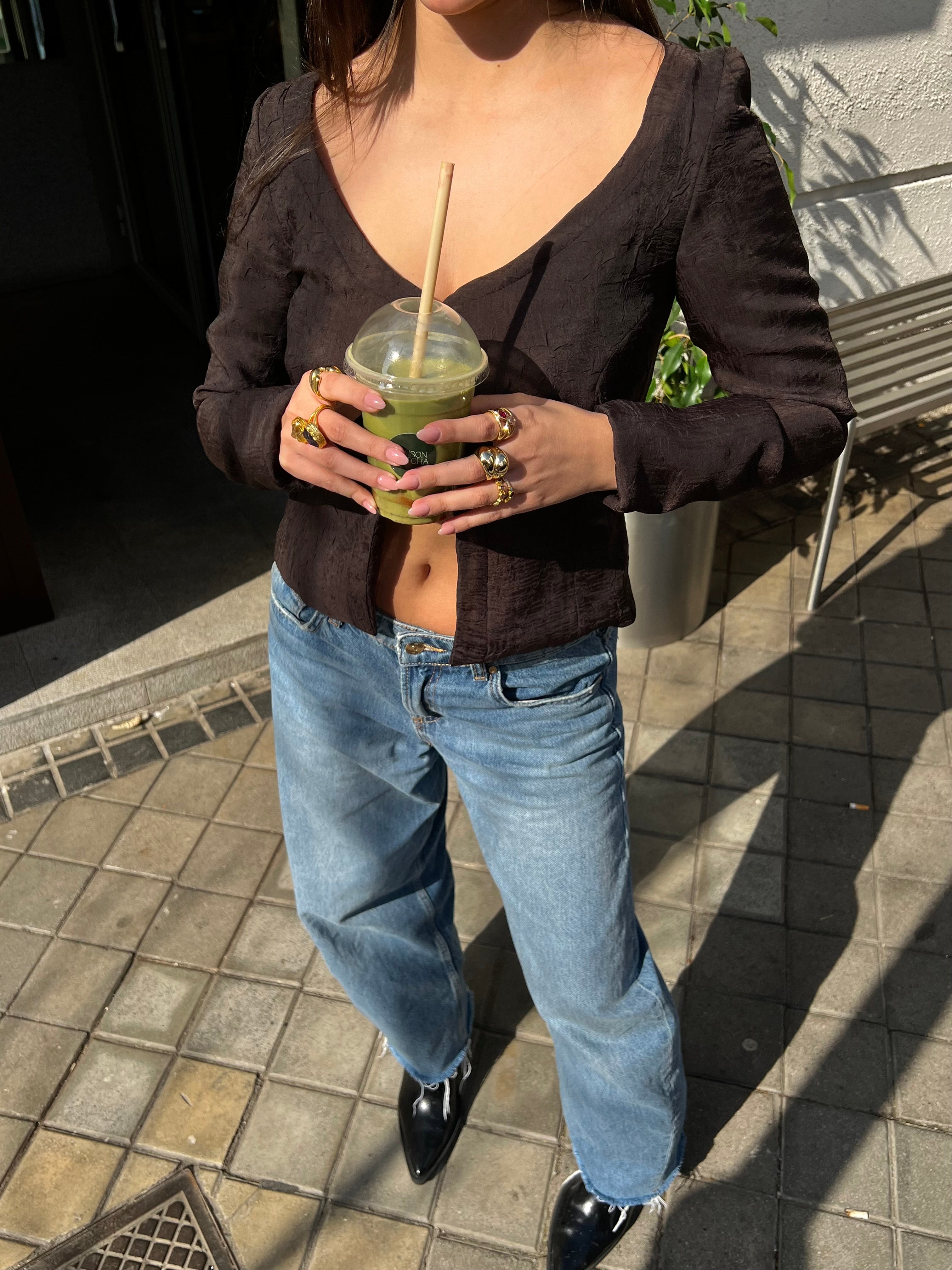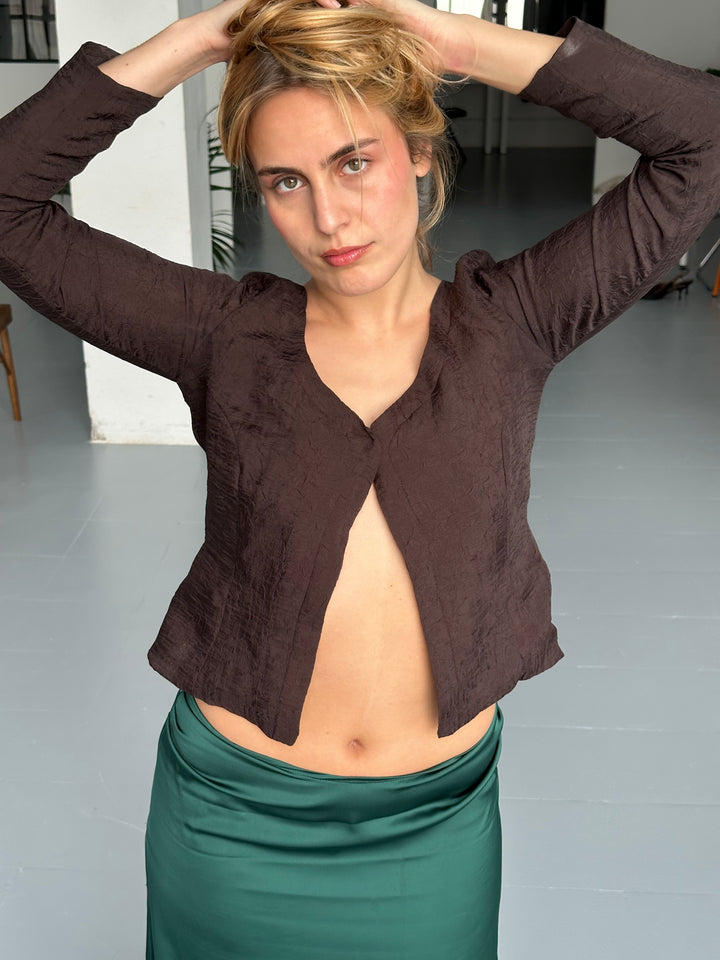 - Blusa de color marrón chocolate con textura