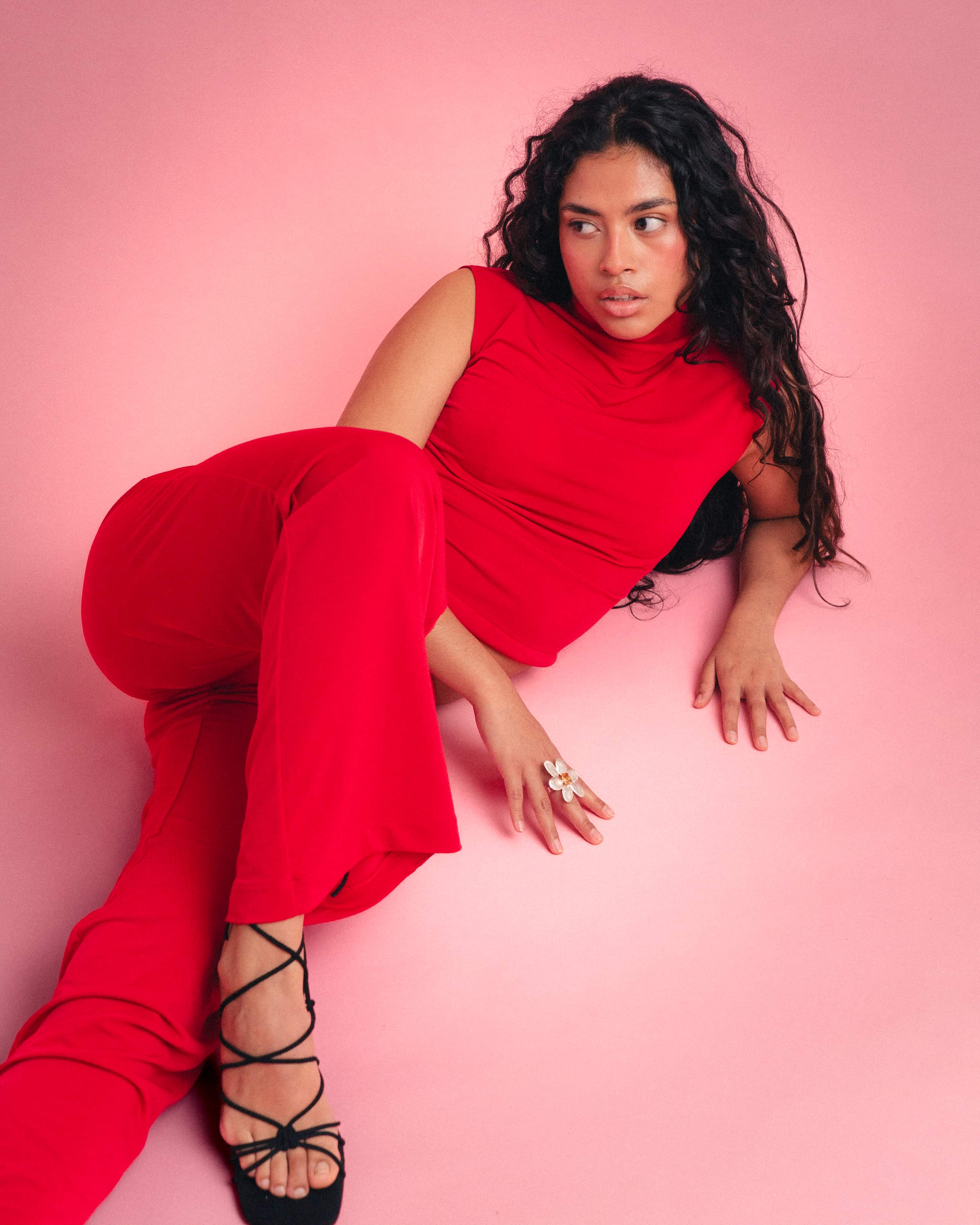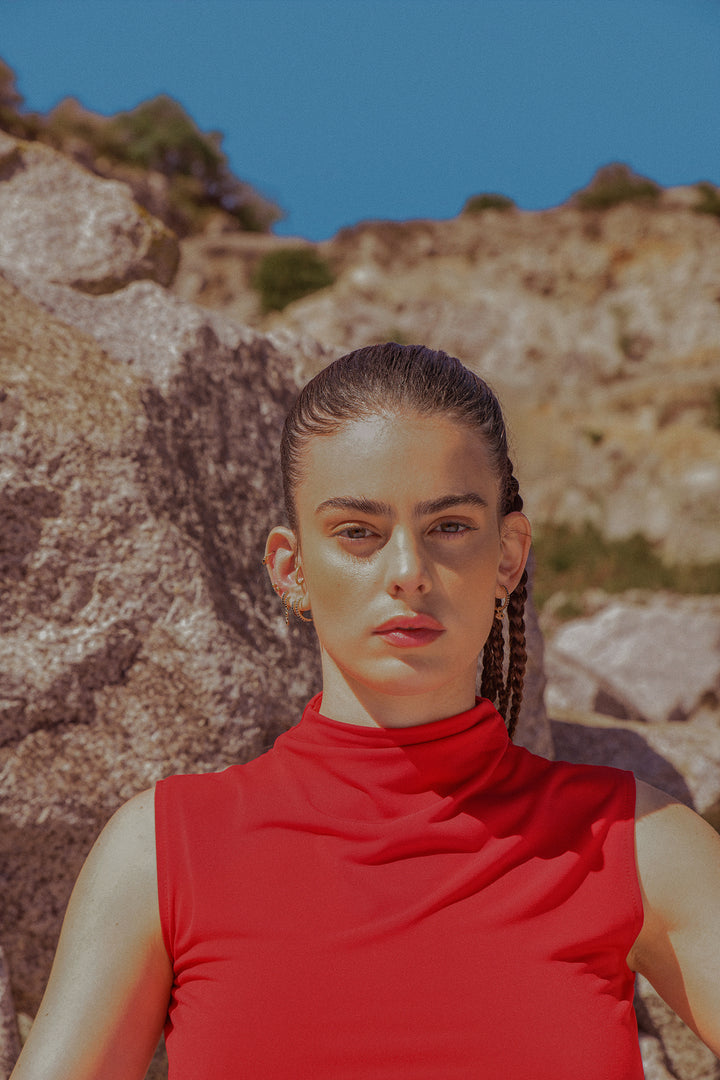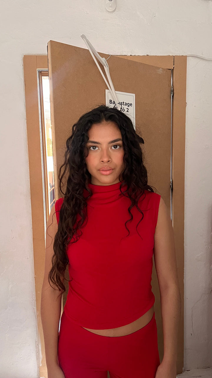 Lola top es la parte superior del set rojo de la colección SS24 de UNE CONCEPT. El top Lola es poderosa. Con actitud y carácter. Seria y a la vez cercana. Flamenca.