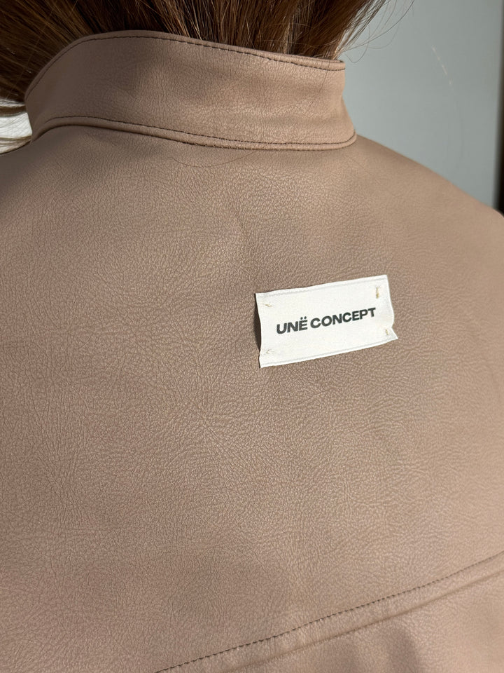 - Brown jacket with dropped shoulders and collar