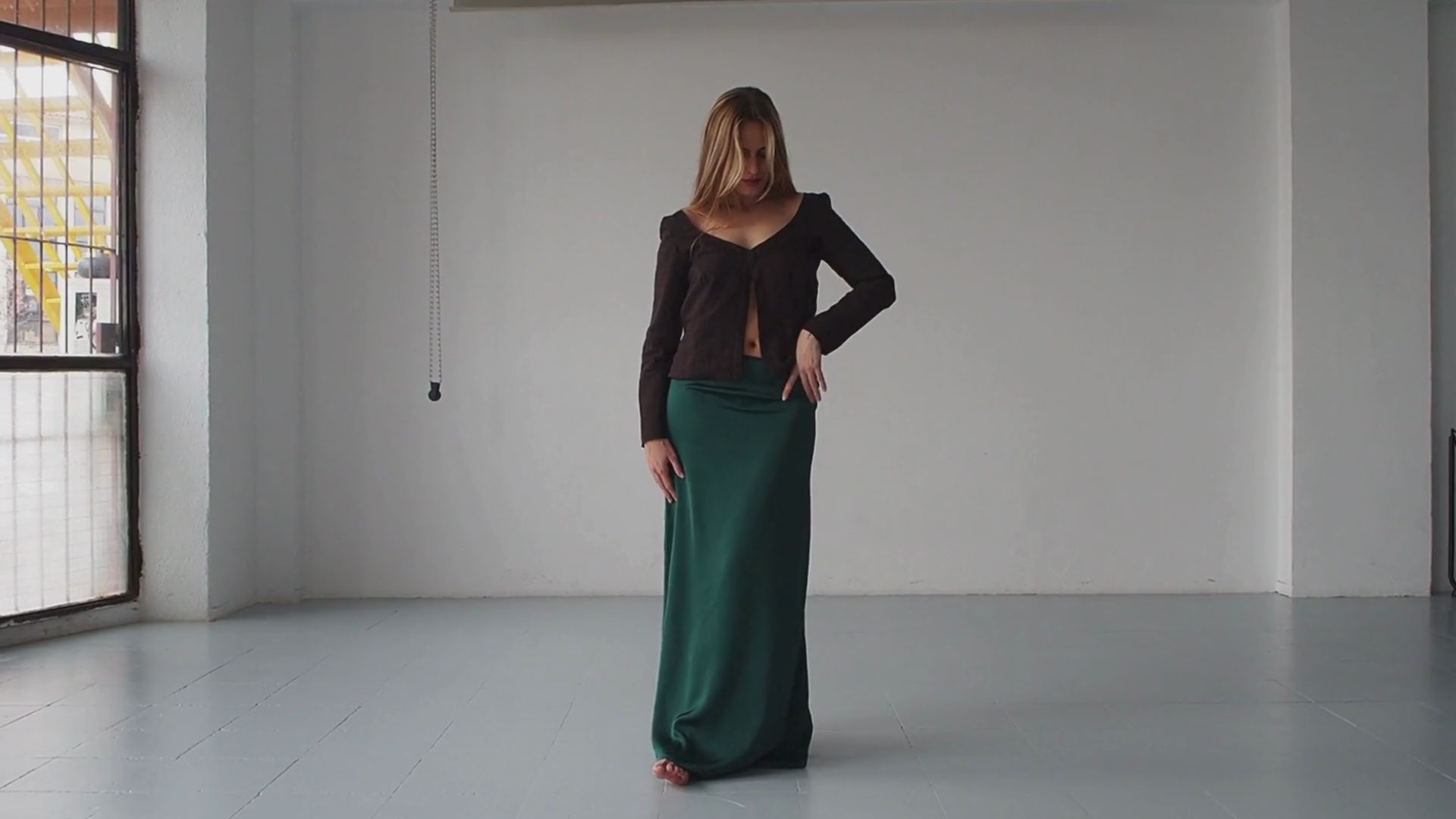 The Lagrima Skirt is the emerald green maxi skirt from UNE CONCEPT's AW24 collection. The Lagrima Top embodies delicacy, sensuality, and desire.