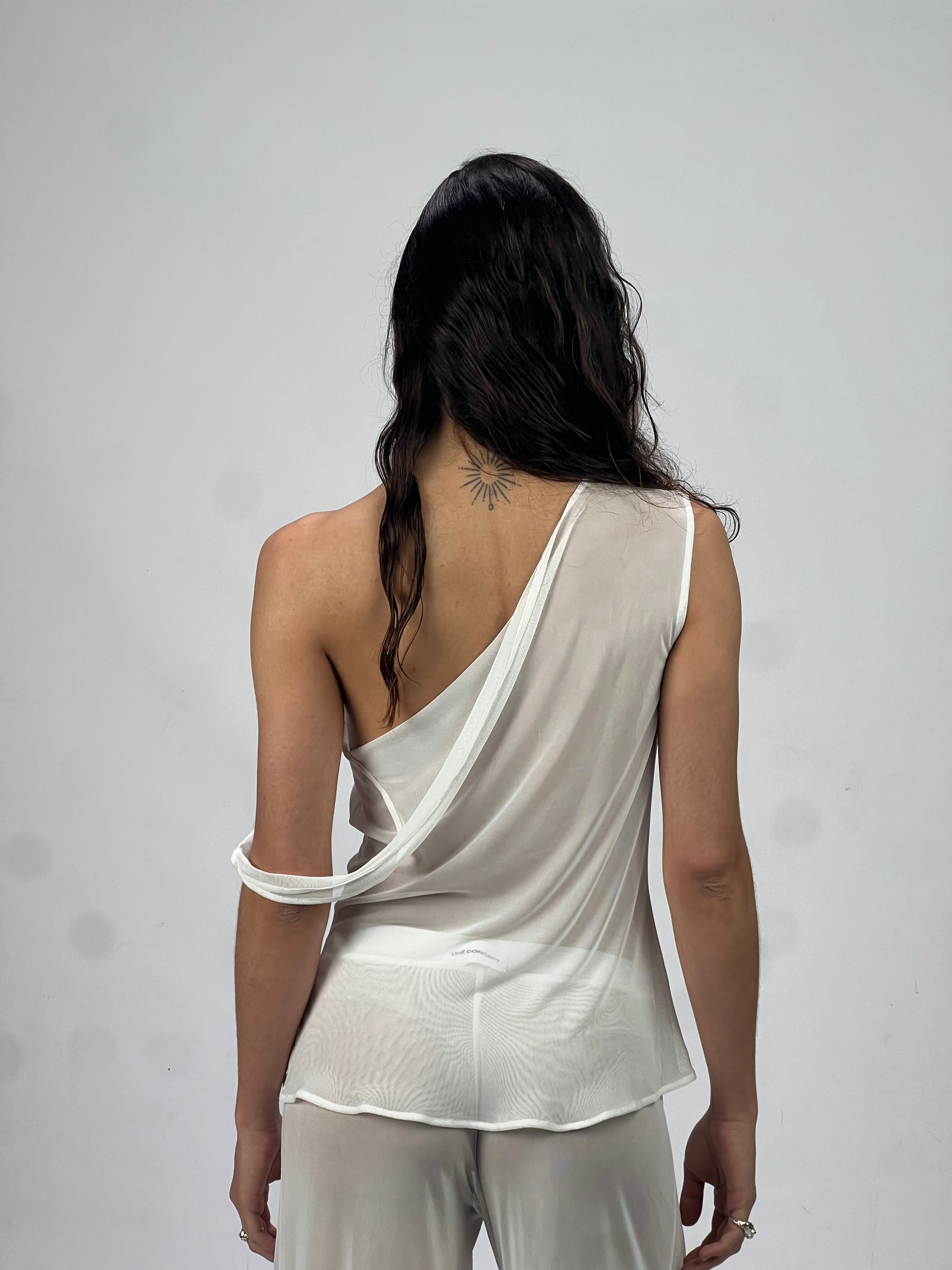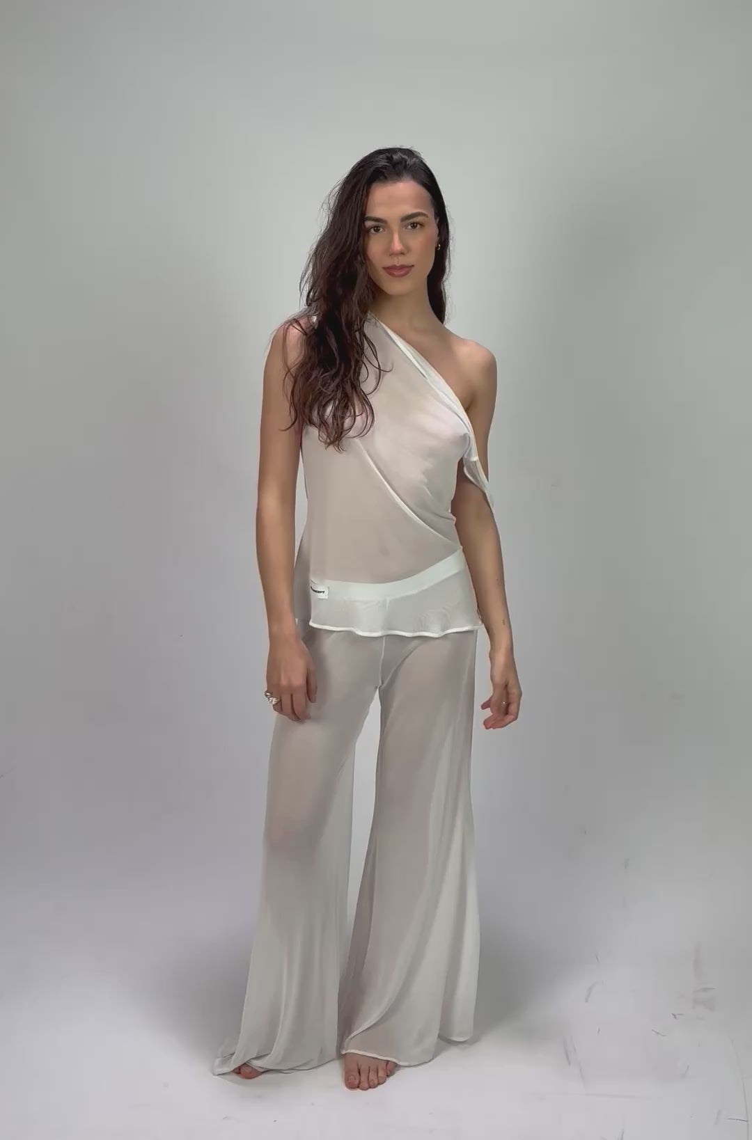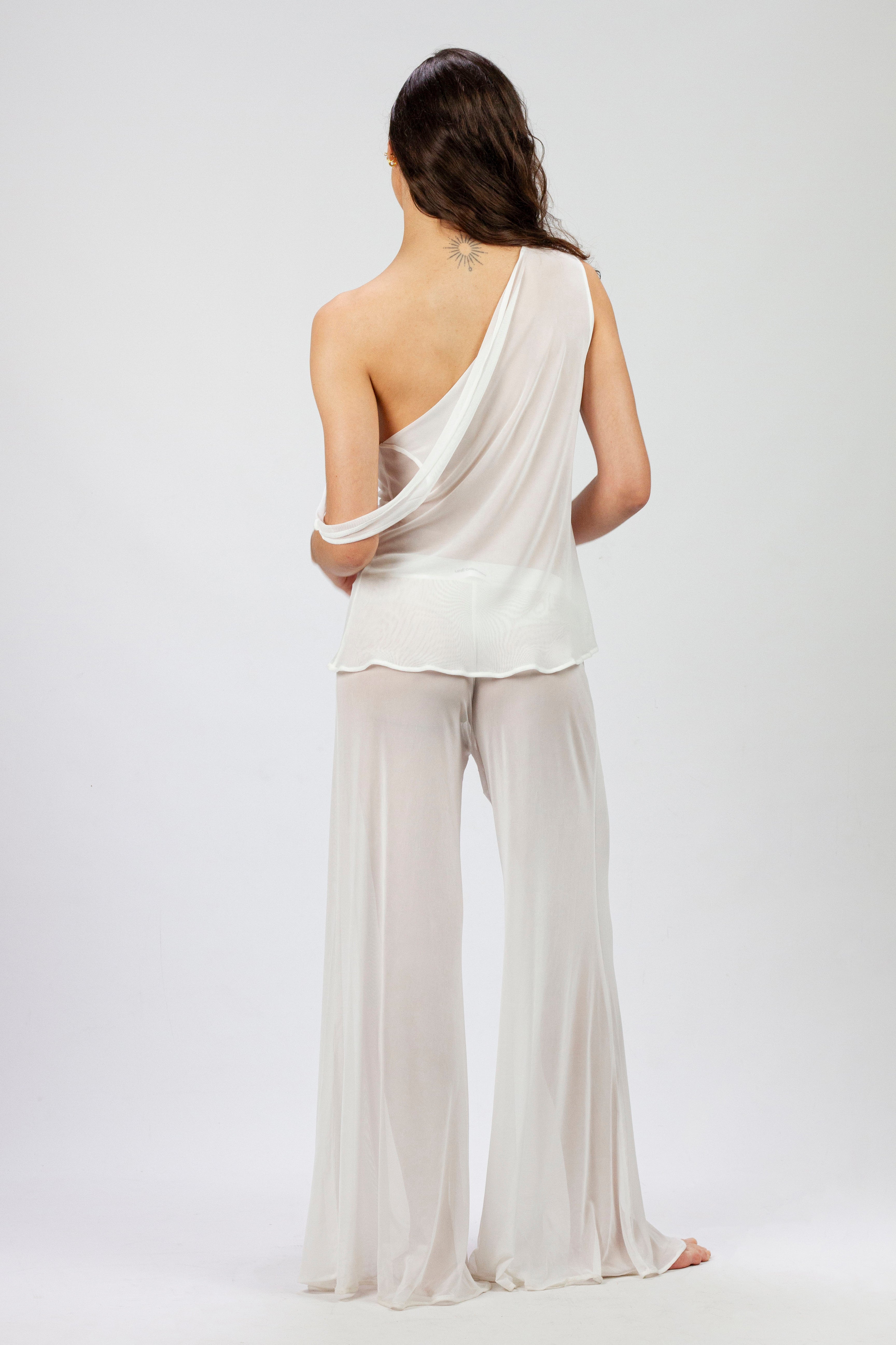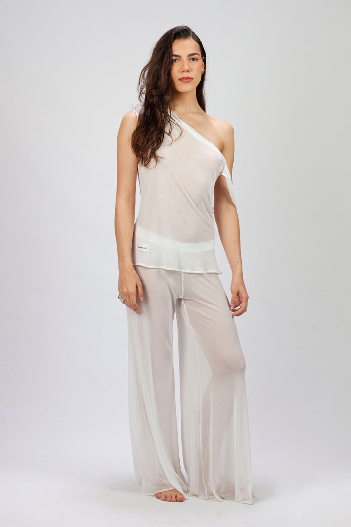 - Pantalón semi transparente de tul blanco elástico