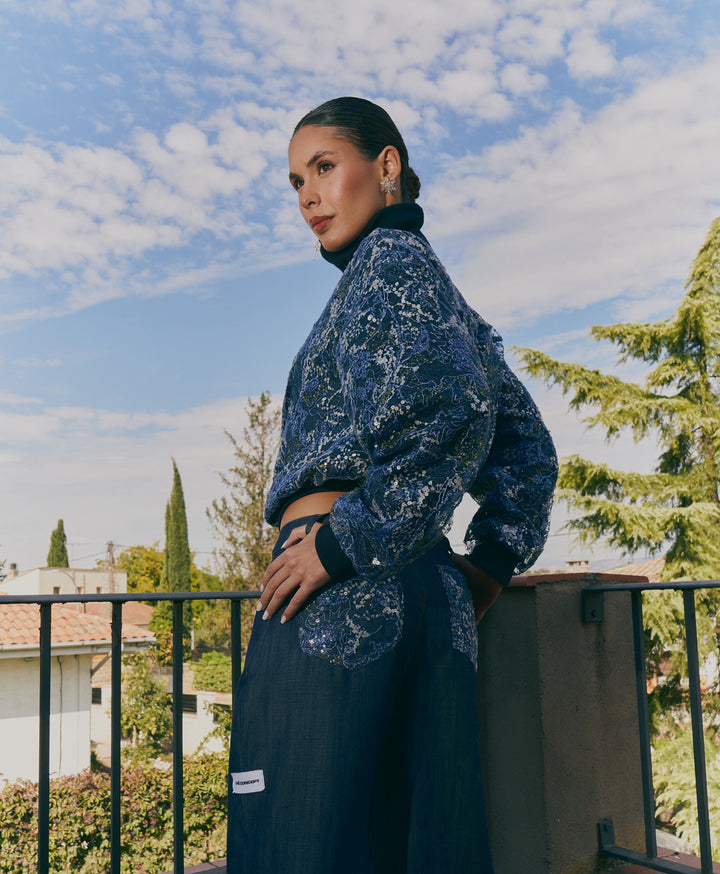 - Pantalón vaquero con bolsillos traseros con lentejuela