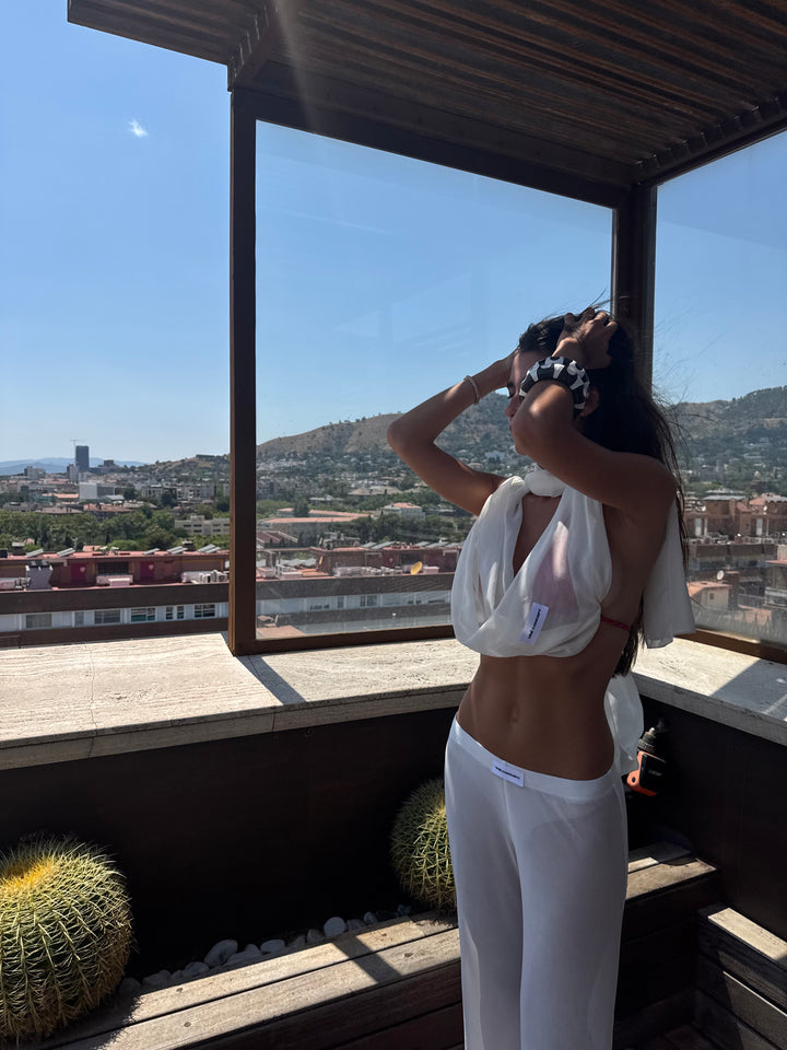 - A versatile piece — wear it as a scarf, choker, top, belt, or wrap.