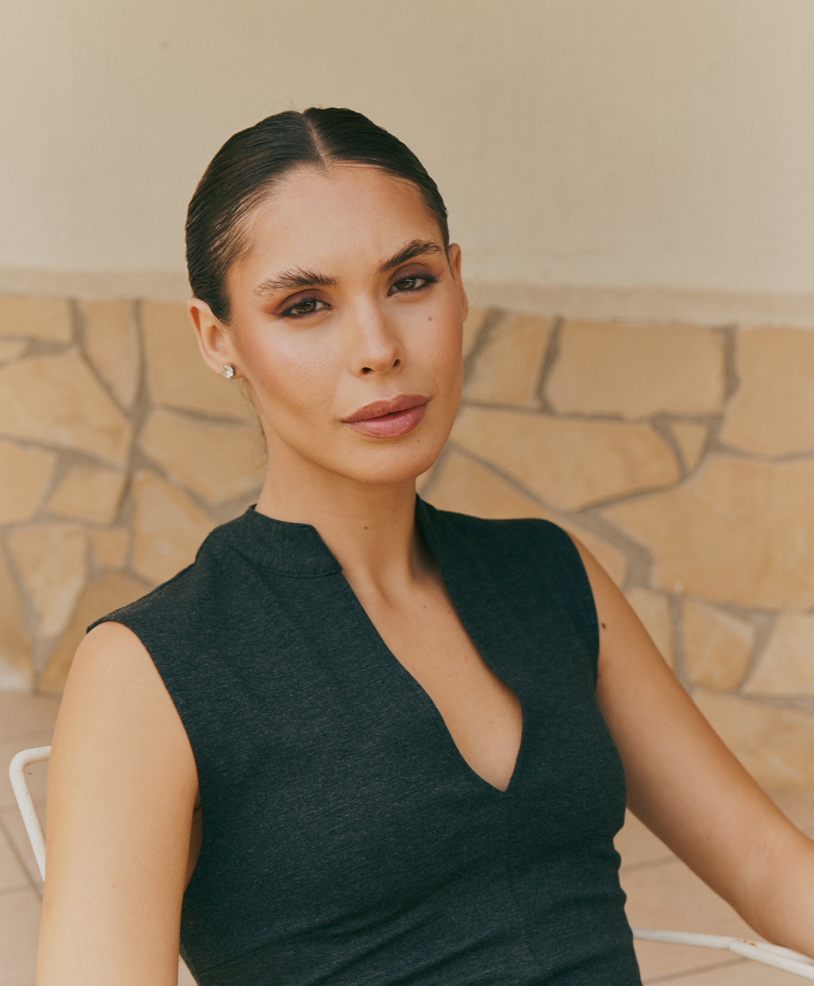 - Cuello halter con escote en pico para favorecer la zona del pecho