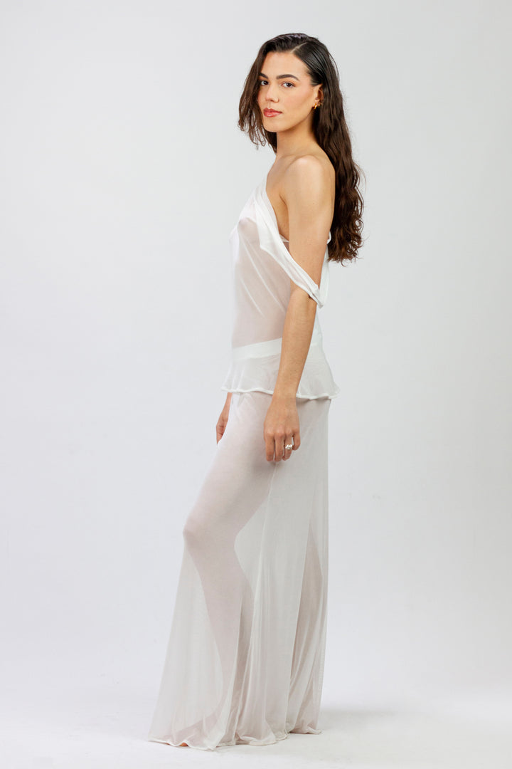 - Top de tirantes semi transparente de tul blanco elástico